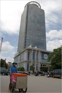 | Tòa tháp văn phòng ở thủ đô Phnom Penh, nơi đặt sở giao dịch chứng khoán Campuchia. Ảnh NYT |