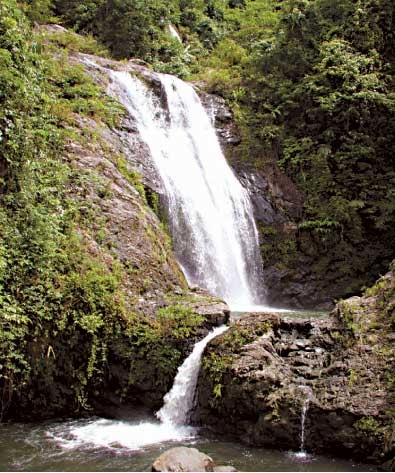 Điểm dừng chân đầu tiên trên đường lên Cửu thác là thác Tiên Tắm. Dòng thác thoai thoải, bạc trắng như mái tóc bồng bềnh của tiên nữ. Theo truyền thuyết, dòng thác từng là nơi hội tụ những tiên nữ đại ngàn. Ngày nay, thác nước là bãi tắm lý tưởng cho du khách vào những ngày nóng nực.