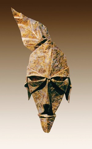 Mẫu mặt nạ này của tôi là một ví dụ dùng giấy dán tường (trường hợp này không xài với hồ của loại này mà xếp bình thường, sau đó dùng keo dán ở một vài điểm để giữ mẫu cố định vì loại này không giữ nếp như giấy thường).