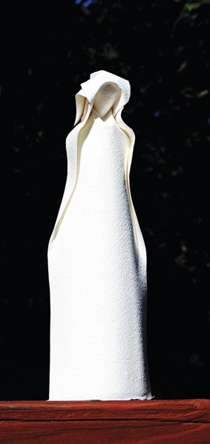 “Giấy đất sét” (hoặc một loại đất sét cán mỏng) – xếp xong đem nung như làm gốm, ví dụ sau là tác phẩm của Jason Shearer, hình gởi tôi coi mấy năm trước. Giấy đất sét là loại có lớp đất sét mỏng kẹp giữa hai lớp giấy, khi nung thì phần giấy sẽ bị hủy. Loại này chỉ dùng xếp những mẫu đơn giản.