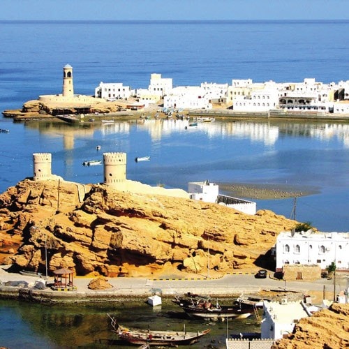 Thị trấn xinh đẹp Sur ven biển với những ngôi nhà màu trắng, trước đây là cảng chuyên trao đổi thương mại của vùng Đông Phi với các loại gia vị, vàng, ngà voi.