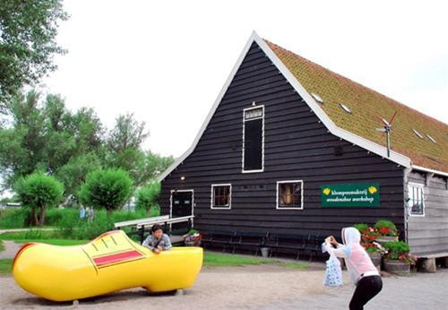 | Chụp ảnh cùng chiếc giày gỗ khổng lồ là “tiết mục” yêu thích của nhiều du khách khi đến làng Zaanse Schans - Ảnh: Trung Uyên |