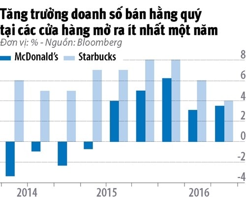 Điều kiện thị trường khắc nghiệt đã góp phần làm chậm lại đà phục hồi doanh số bán tại các cửa hàng mở ra ít nhất 1 năm ở Mỹ của McDonald’s. Công ty này cho biết tăng trưởng chỉ 1,3% trong quý III/2016, quá thấp so với mức tăng 5,7% của quý IV/2015.