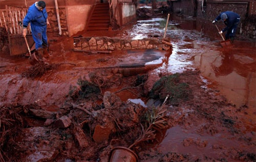 Ngày 4/10/2010, đập hồ chứa bùn đỏ tại mỏ khai thác và chế biến bôxít ở Ajka, Hungary đã bị vỡ. Gần 1 triệu m3 bùn đỏ đã tràn xuống phủ một diện tích 40km2 và làm tan hoang nhiều khu dân cư.