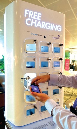 Dịch vụ này có thể tìm thấy ở những vị trí thuận tiện nhất tại cả 3 nhà ga của sân bay Changi. Ngoài ra còn có một quầy dành cho việc nạp điện tại tầng 2, điểm khởi hành và trung chuyển T3 phía Bắc cùng một trạm khác cũng đặt trên tầng 2, điểm khởi hành và trung chuyển T2 phía Nam: tổng cộng có 10 trạm.